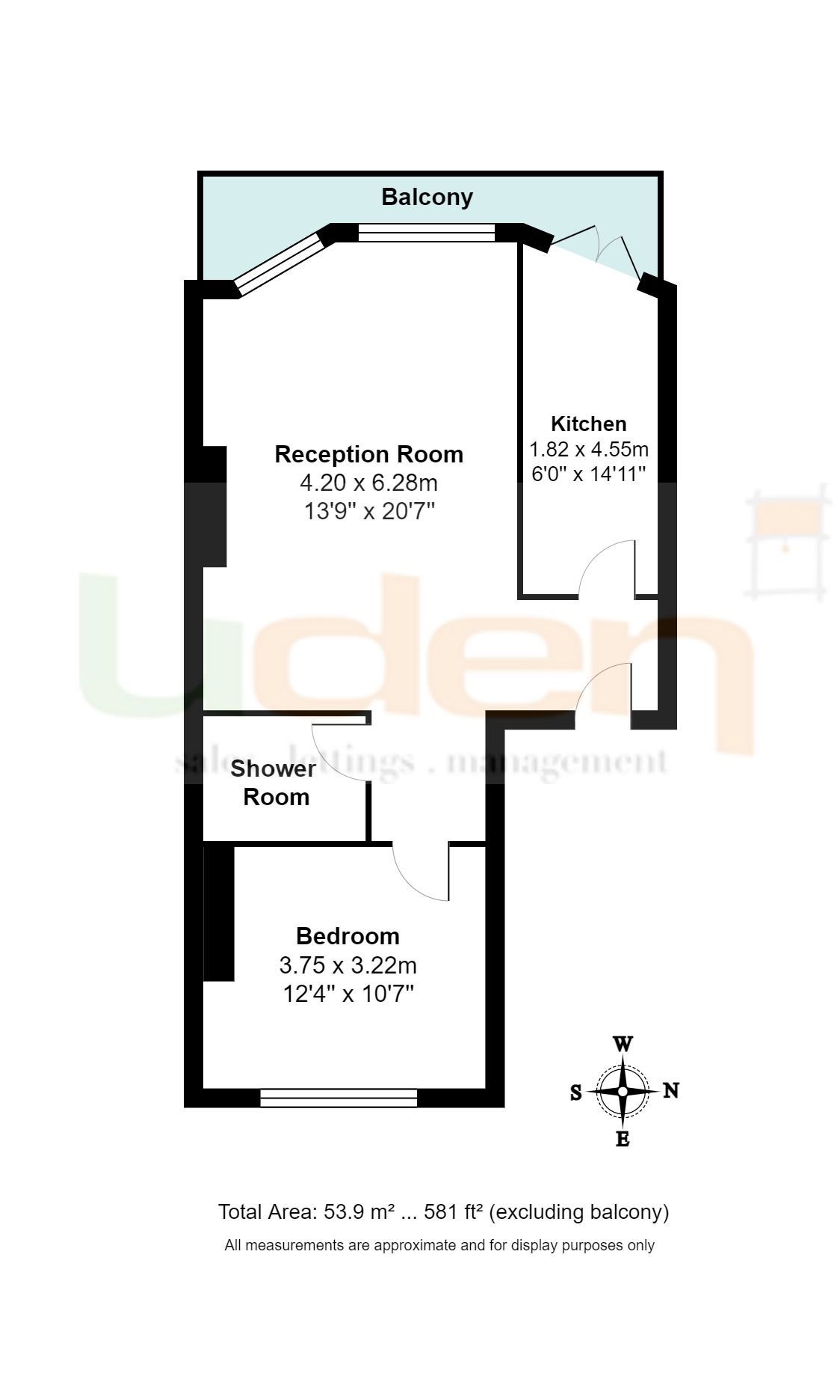 LIVING ROOM 20'9" (6.32m) x 13'7" (4.14m) radiators, power points, full length windows opening on to the west facing front Balcony.