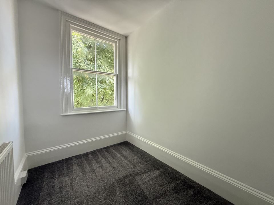 9'22" (3.30m) x 8' (2.44m) radiator, wooden sash window, power points, carpet.