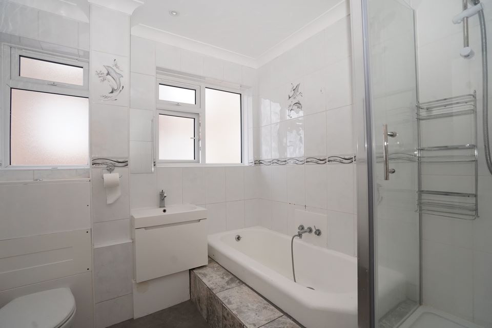BATHROOM large sunken bath with central mixer tap and shower, separate shower cubicle with electric shower, wash hand basin,