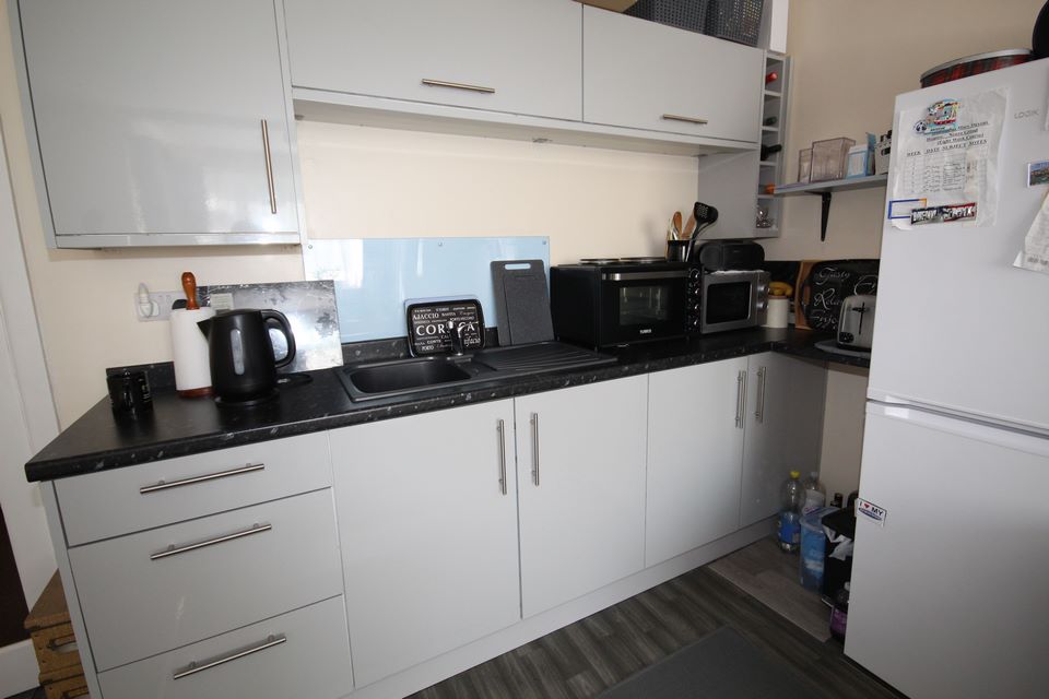 KITCHEN AREA Well fitted with single drainer sink unit inset in working surfaces, range of drawers and cupboards